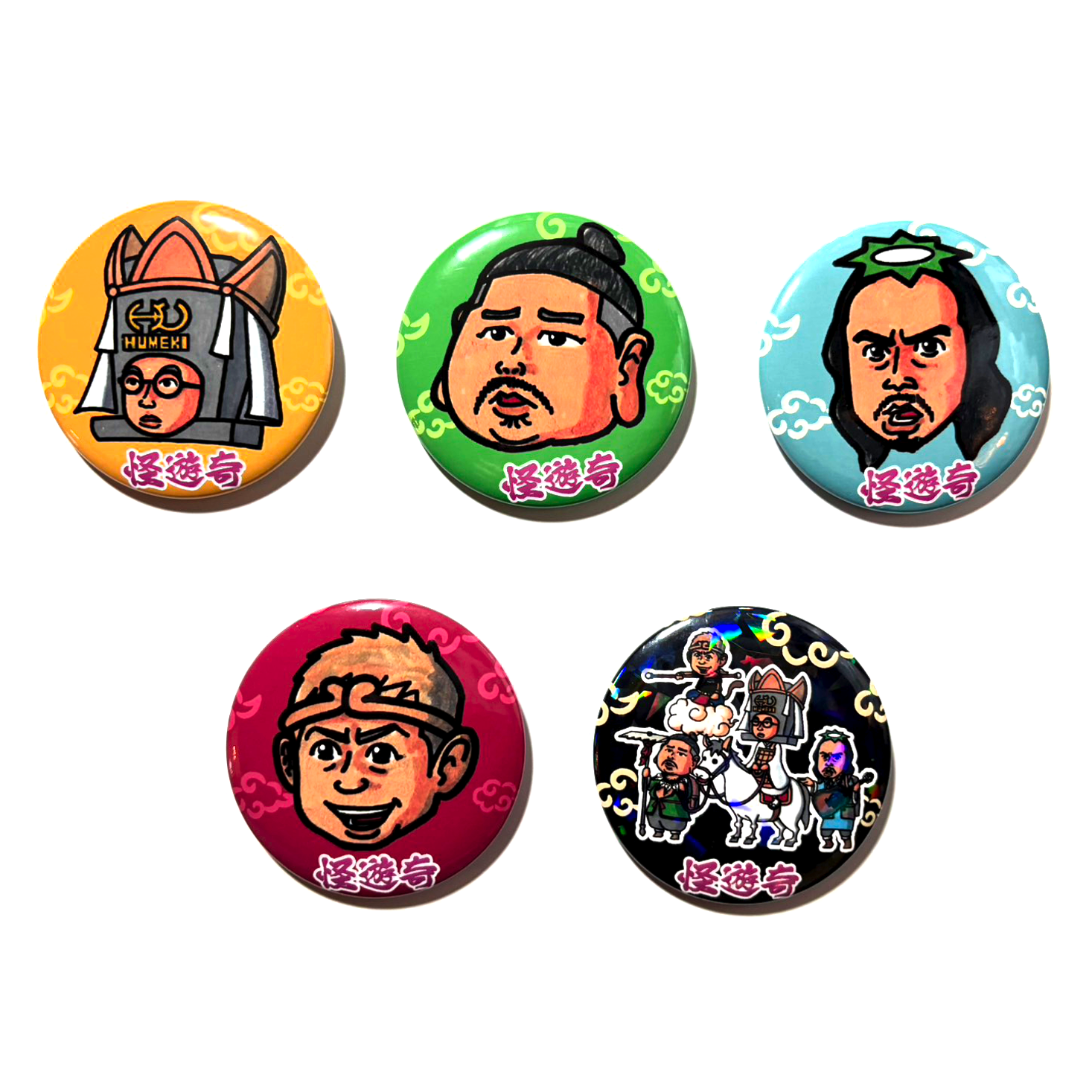 怪遊奇メンバー(ナナフシギ 大赤見ノヴ、ハニトラ梅木、ガンジー横須賀 、トクモリザウルス ヤースー)のイラストを使用した大人気ランダム缶バッジが2026バージョンで登場✨