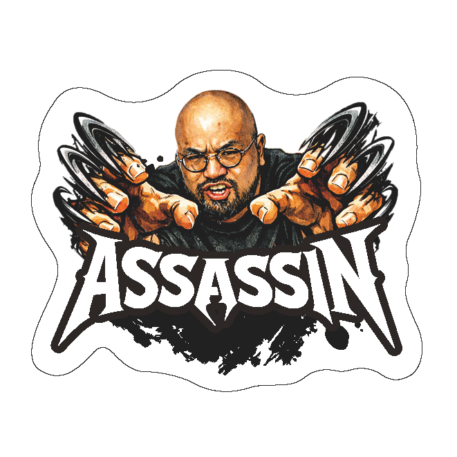 バンドT風のパワフルな築地の健吾がアサシンステッカーで炸裂🔥サイズもスマホのカバーに入るお手頃サイズ♪これであなたもアサシンに!?