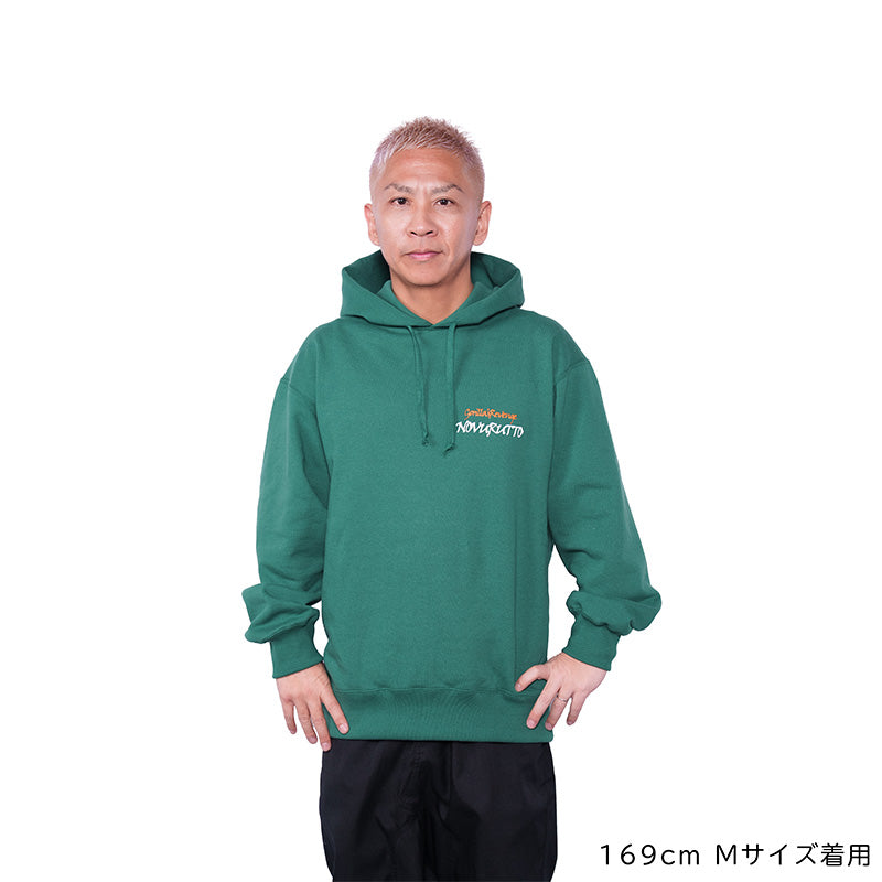 ノヴ専用に設計された型紙をもとに、国内工場で丁寧に縫製。首元や袖、丈感など、細部までサイズ感とリラックス感にこだわり、3rdでは特にフード部分に菊穴を採用。洗濯時に水の通り道を作り乾きやすさを追求。更に敢えてポケットをなくすことで、スッキリとした着用時の映えも演出。